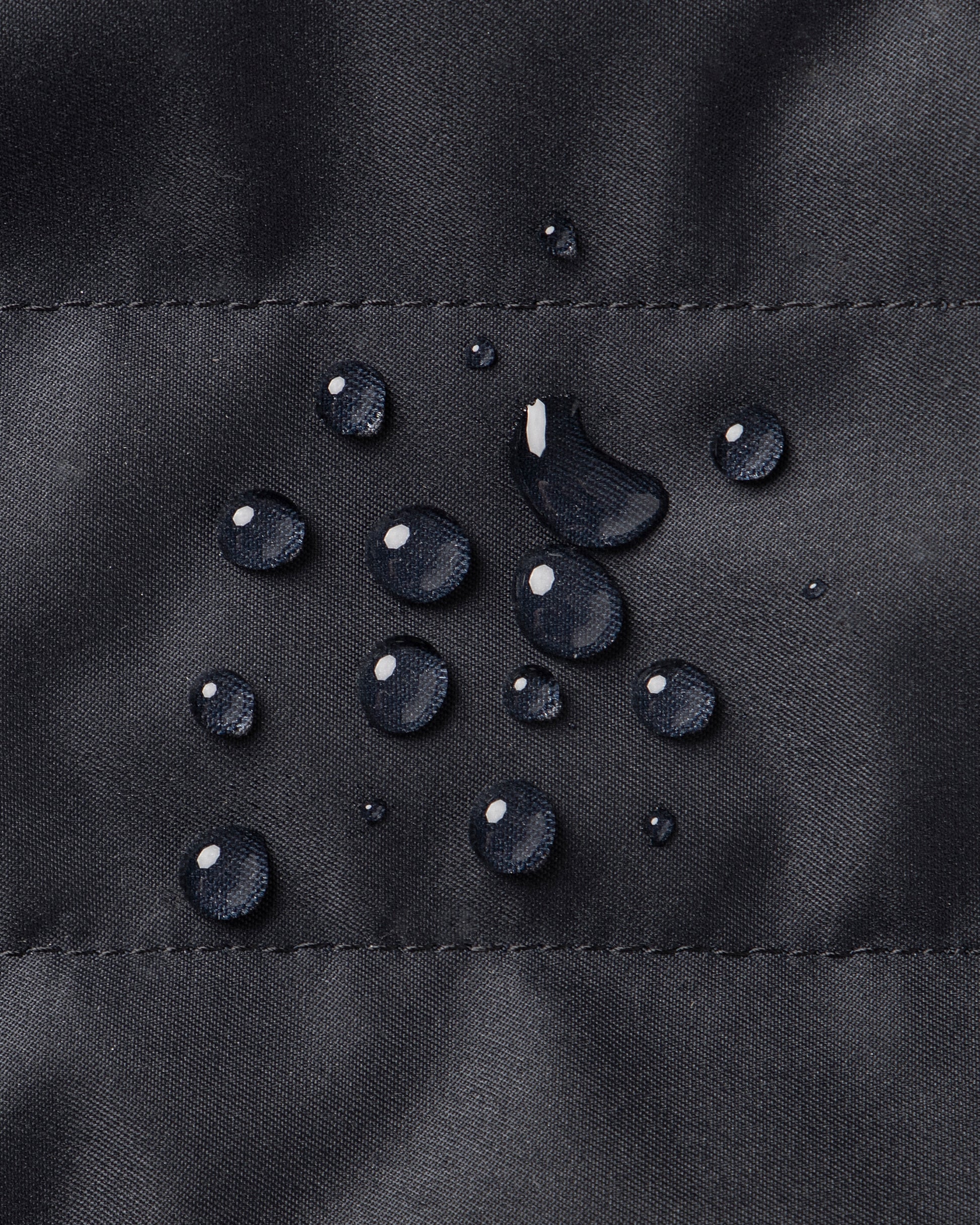 Polyester with a water-repellent finish.